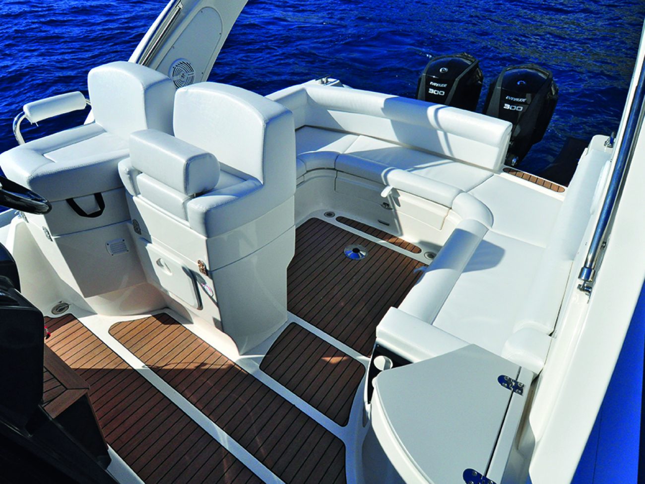 Des performances de puissance et de navigation a couper le souffle.Le 34 Premium est disponible en In-board et en Hors-bord.