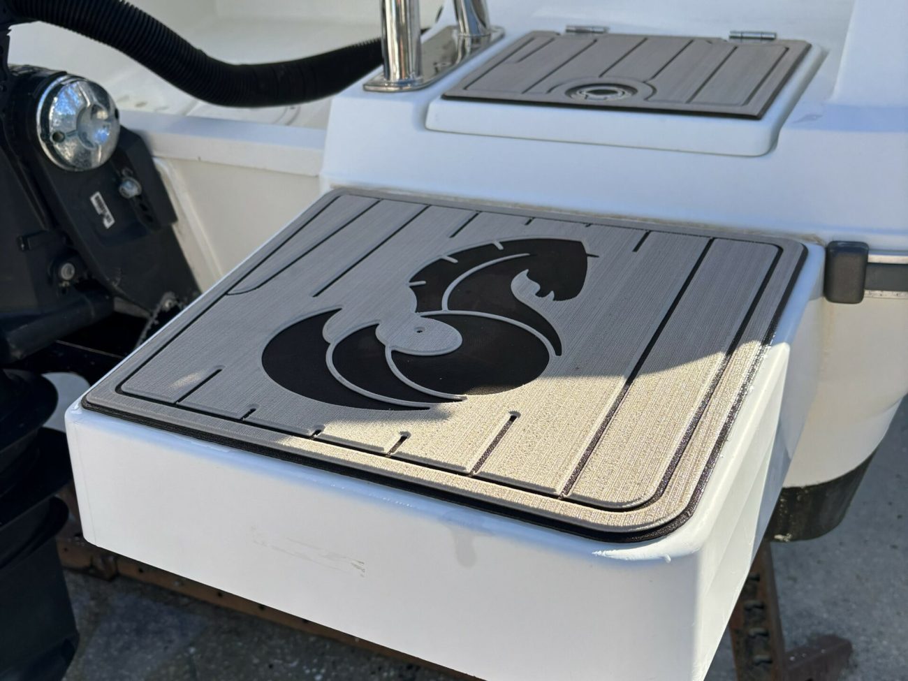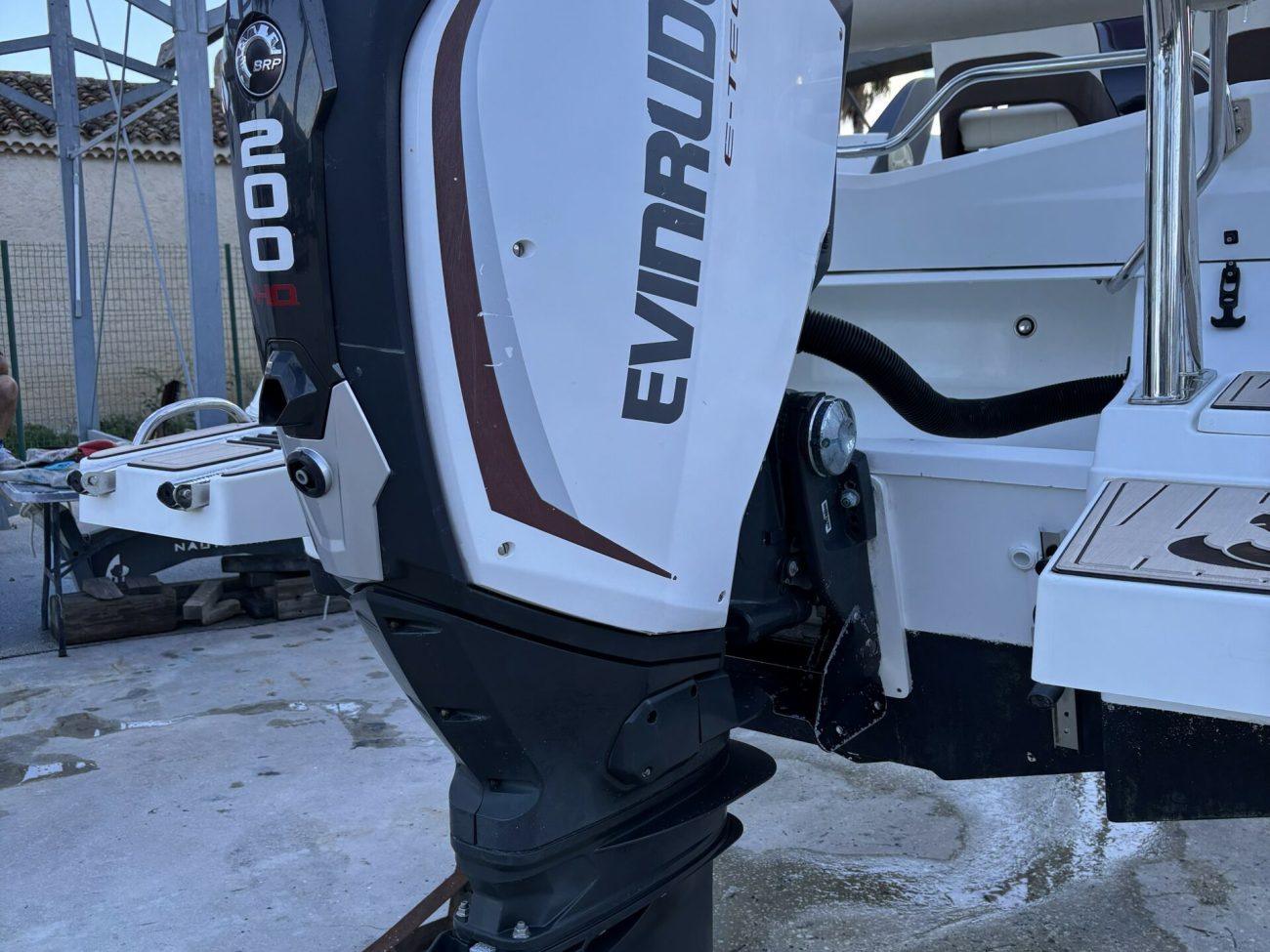 Performances : Le 200 CV assure un déjaugeage instantané et des vitesses de pointe élevées. Parfait pour tracter (ski nautique, wakeboard) et pour les navigations rapides en toute sécurité.