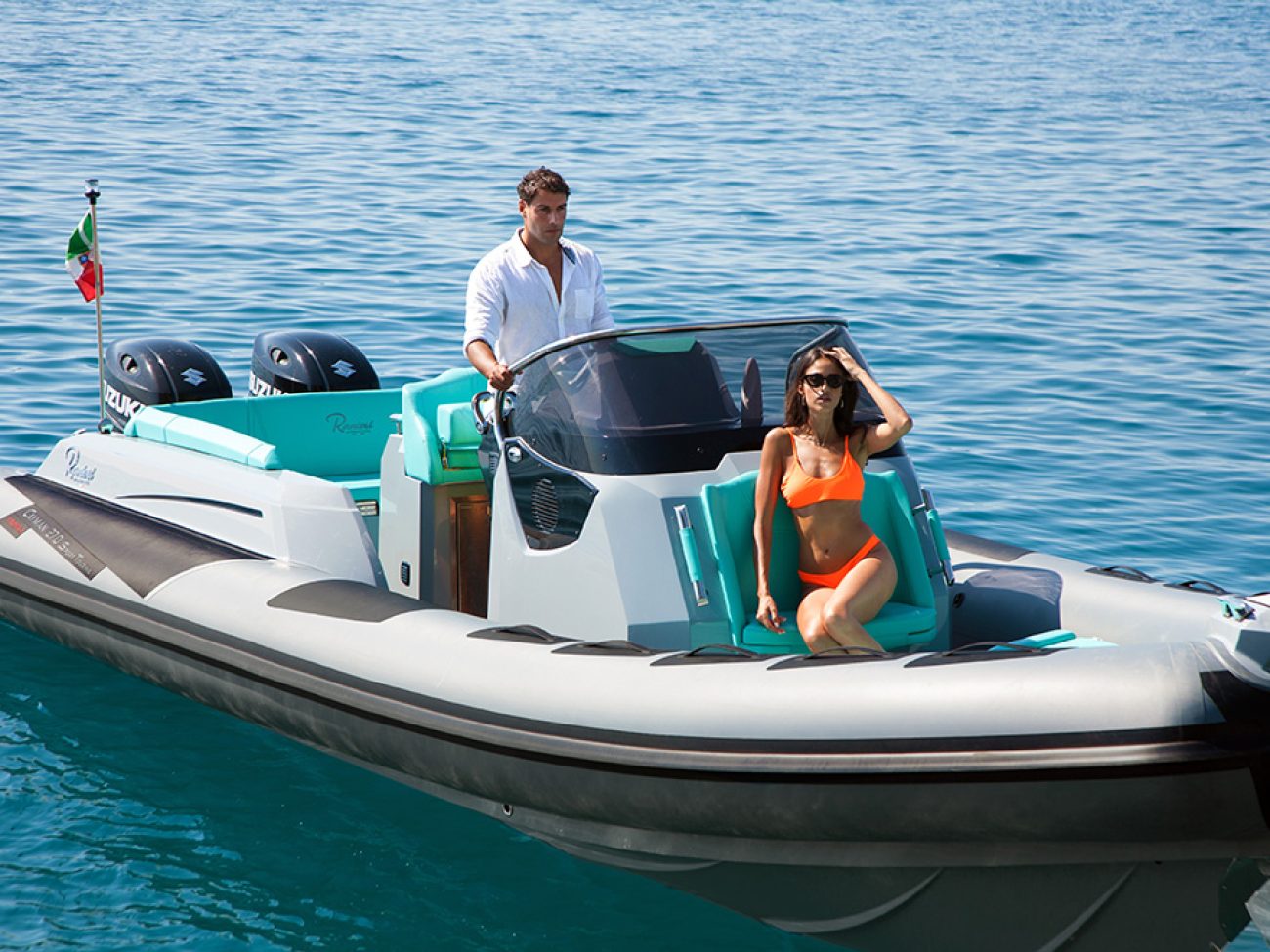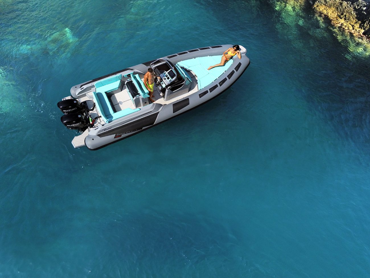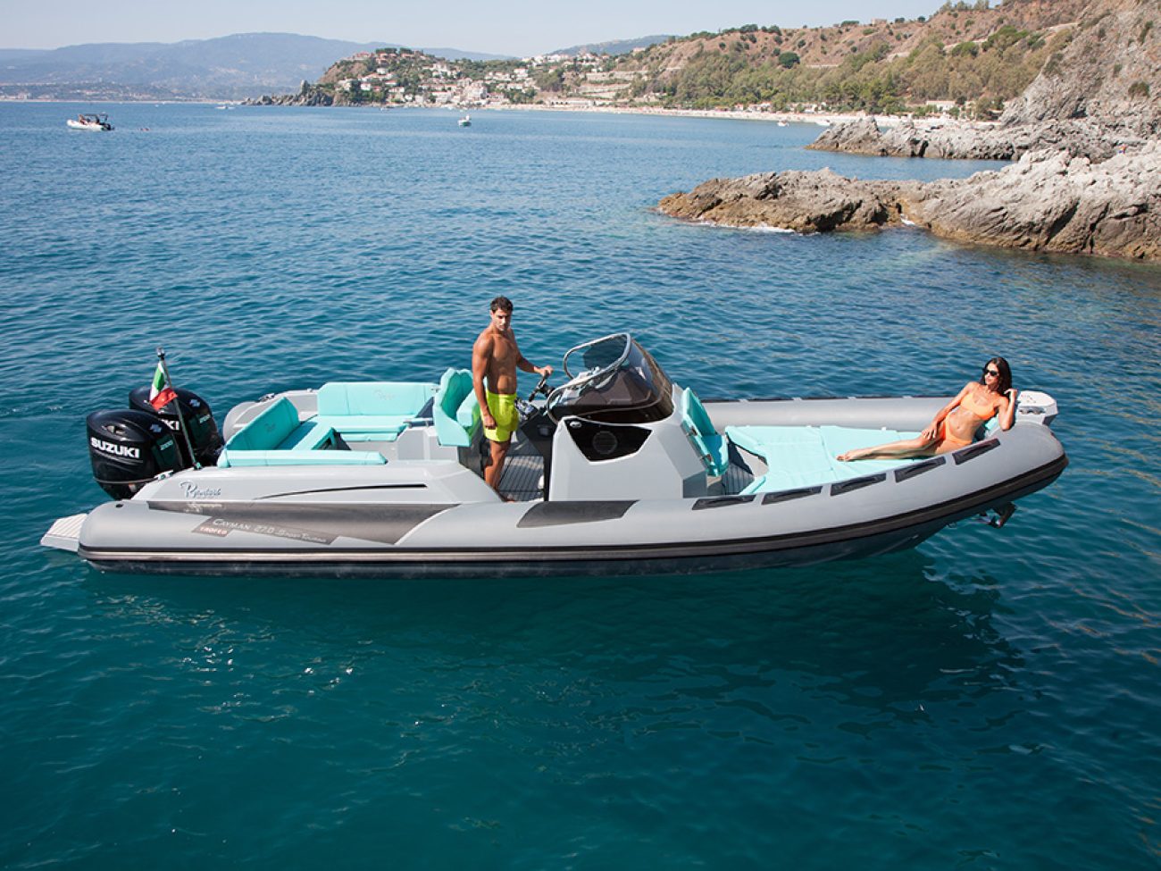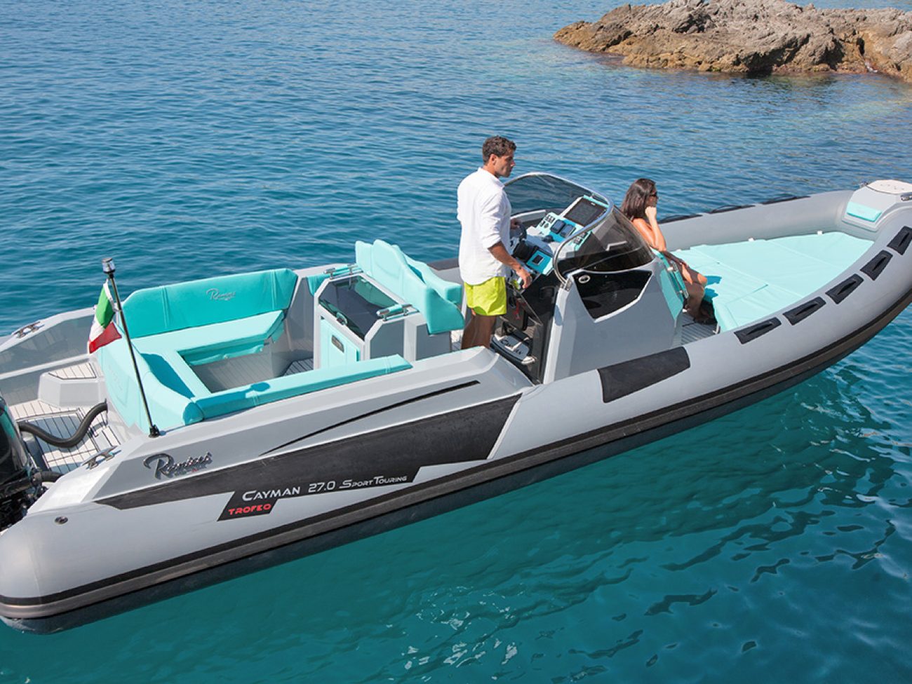 Le SPORT TOURING TROFEO, dispose d’options supplémentaires de séries.En effet de série sont inclus la personnalisation de la couleur des flotteurs, de la coque et du pont et le réfrigérateur en acier inoxydable exterieur.