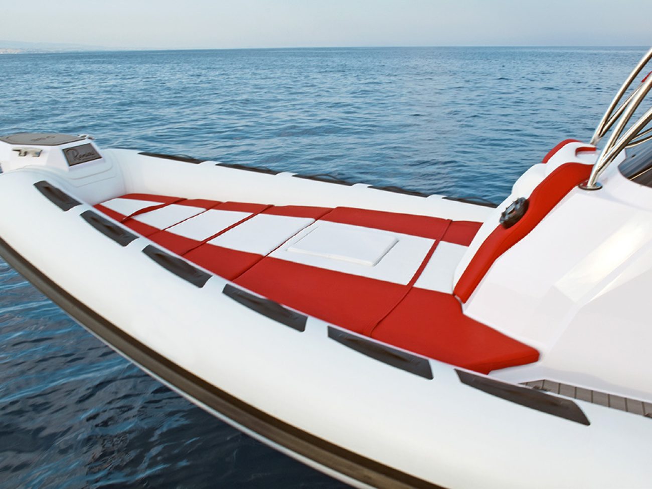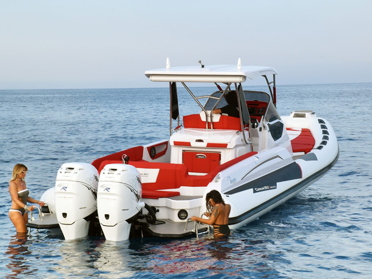 Les passavants larges permettent de se déplacer aisément sur le bateau même en navigation. La grande console centrale est en finition cuir de qualité avec un volant édition spéciale. La position de conduite sera apprécié par le pilote avec le repose pieds.