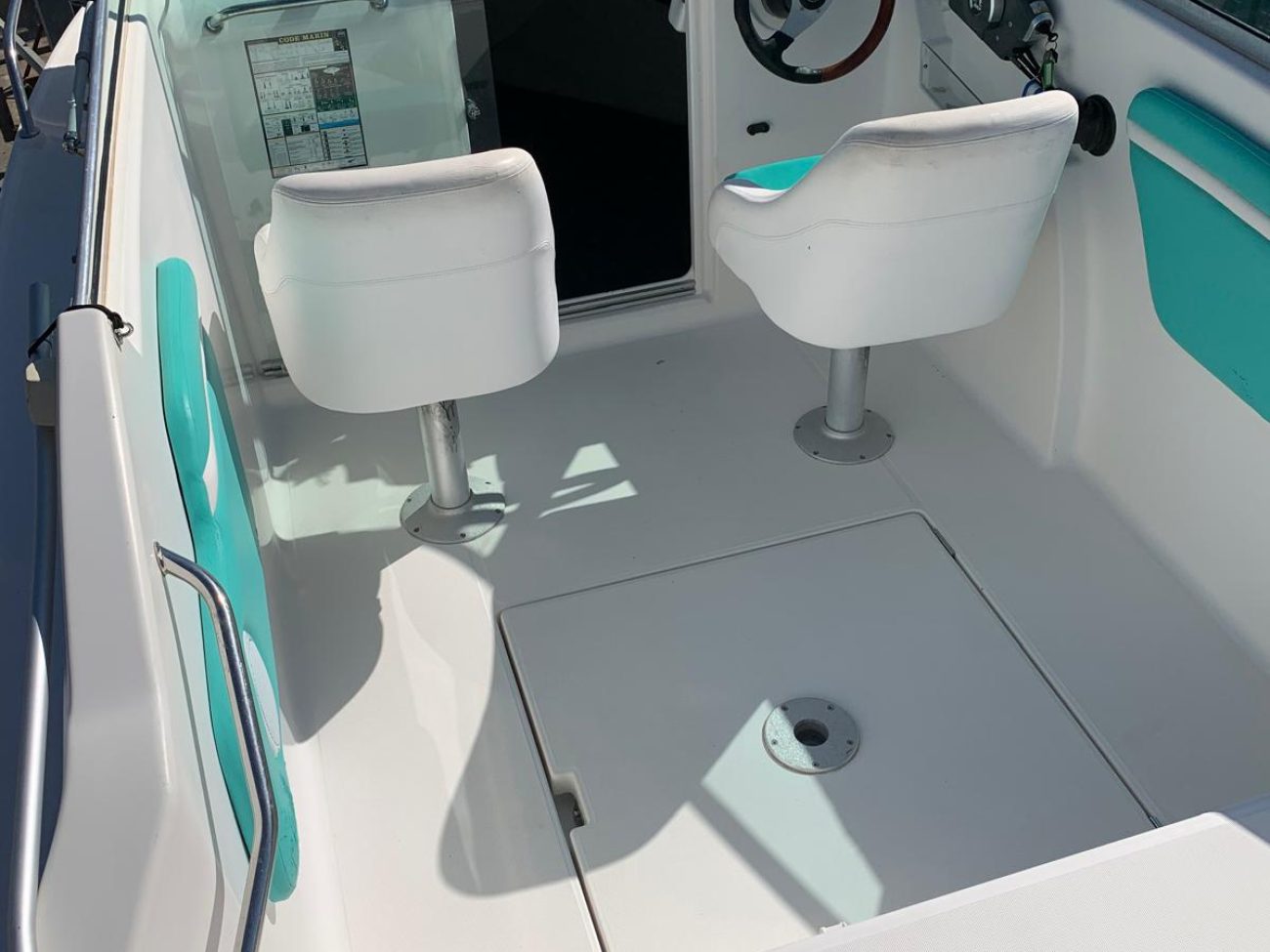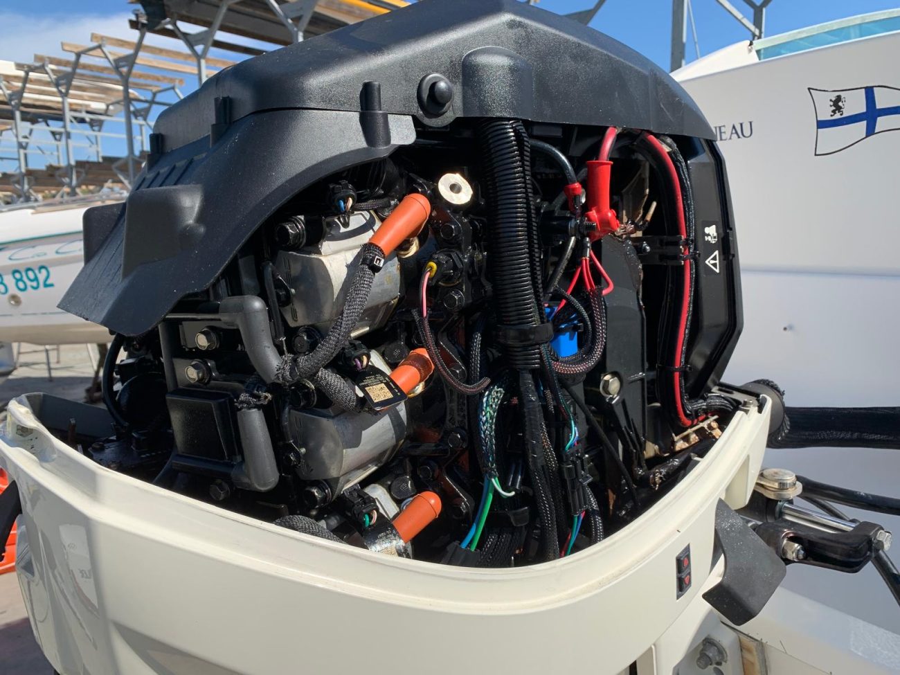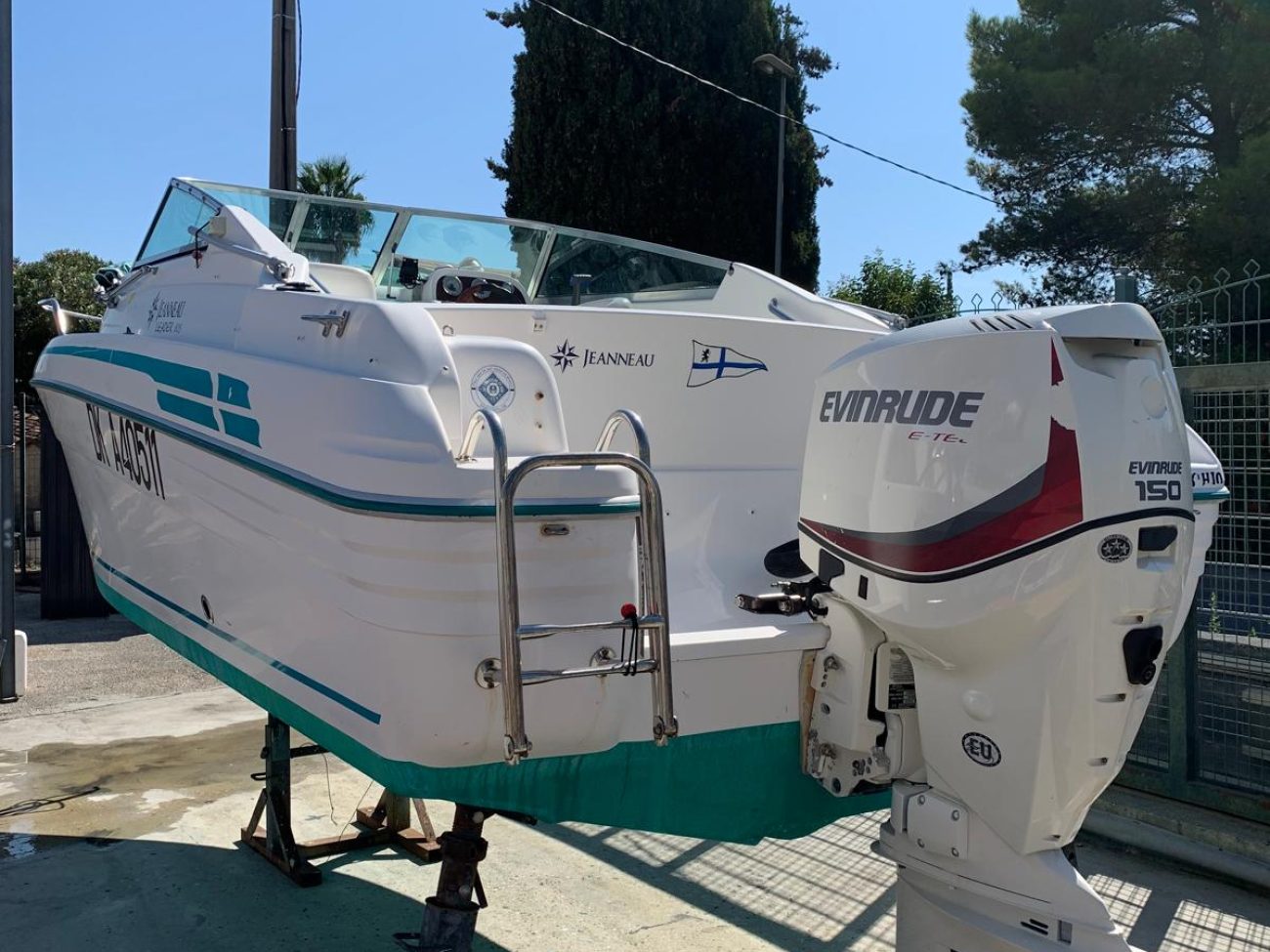 Très belle occasion Jeanneau leader 605 HB remotorisé en 2015 avec un moteur Evinrude Etec.