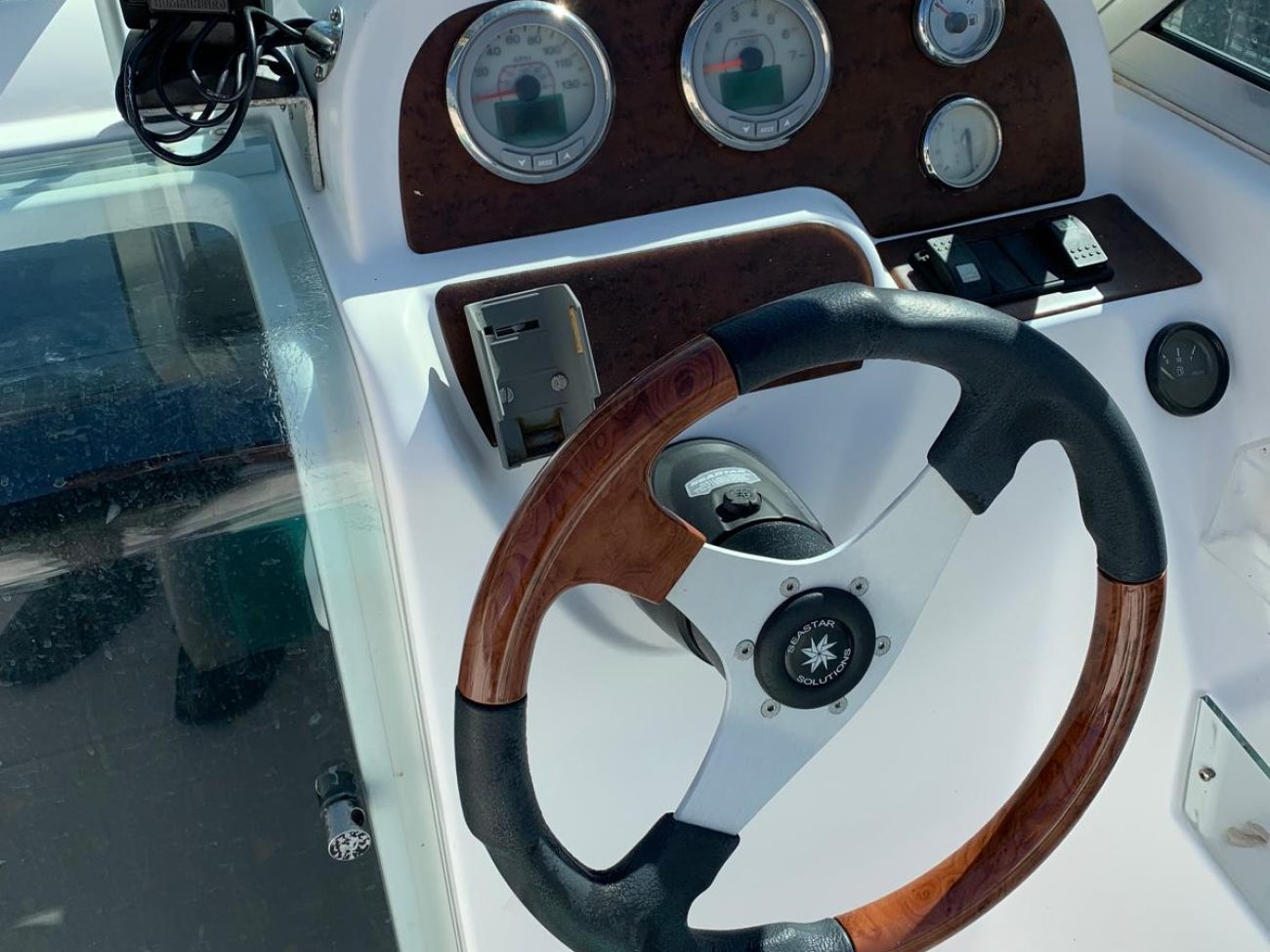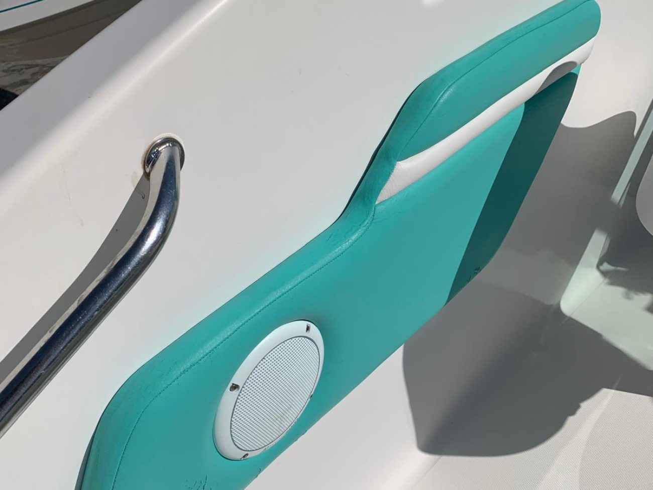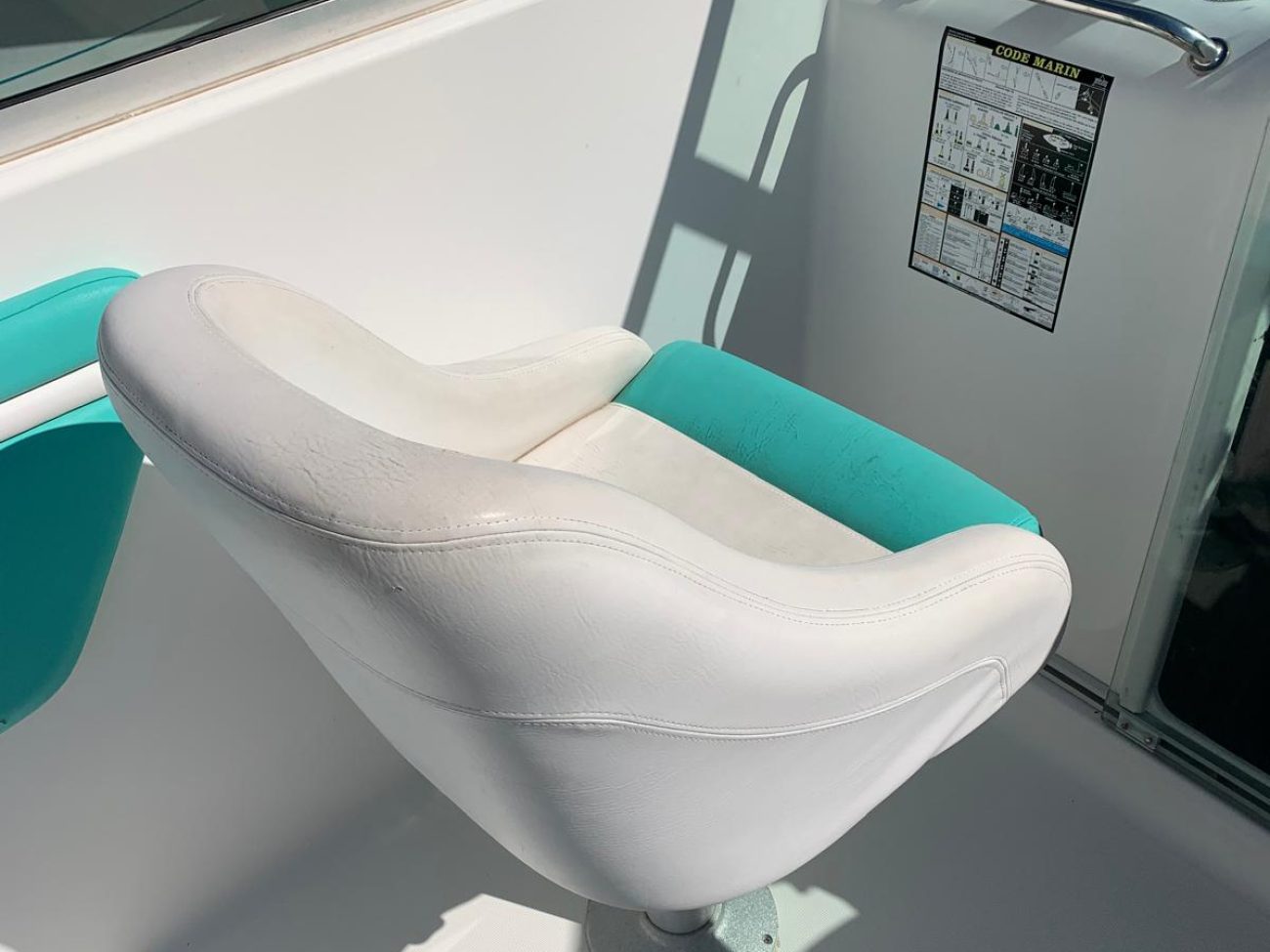 Très belle occasion Jeanneau leader 605 HB remotorisé en 2015 avec un moteur Evinrude Etec.