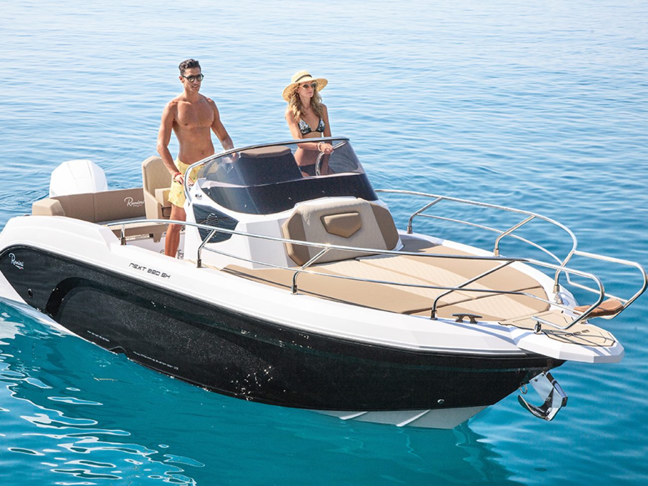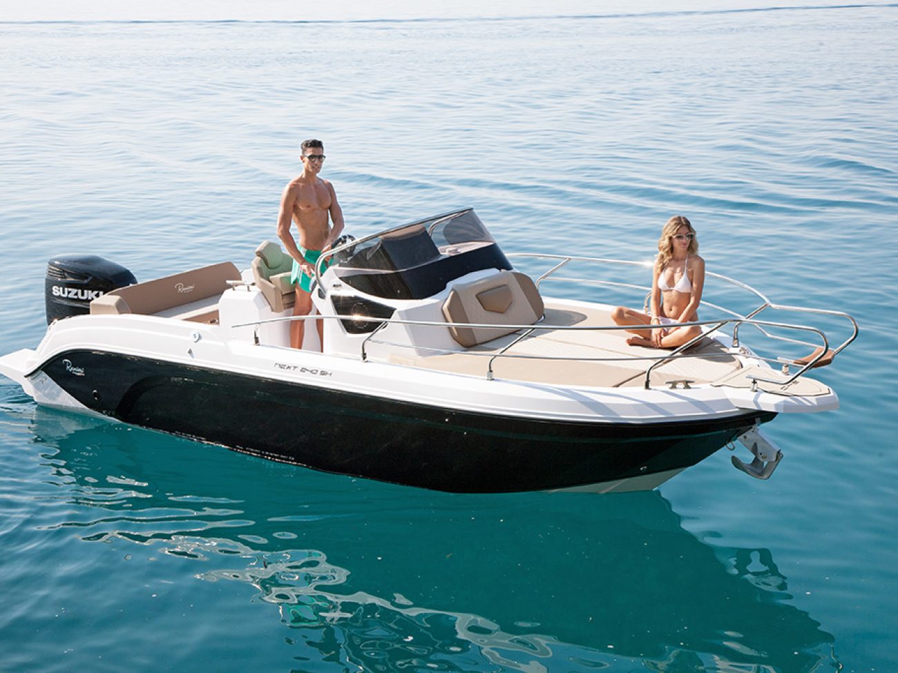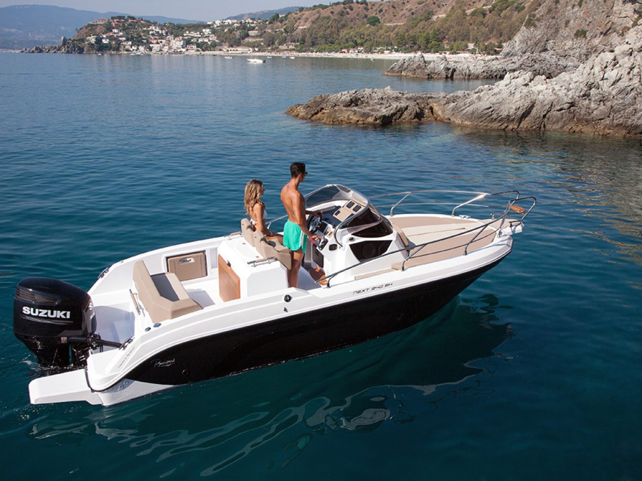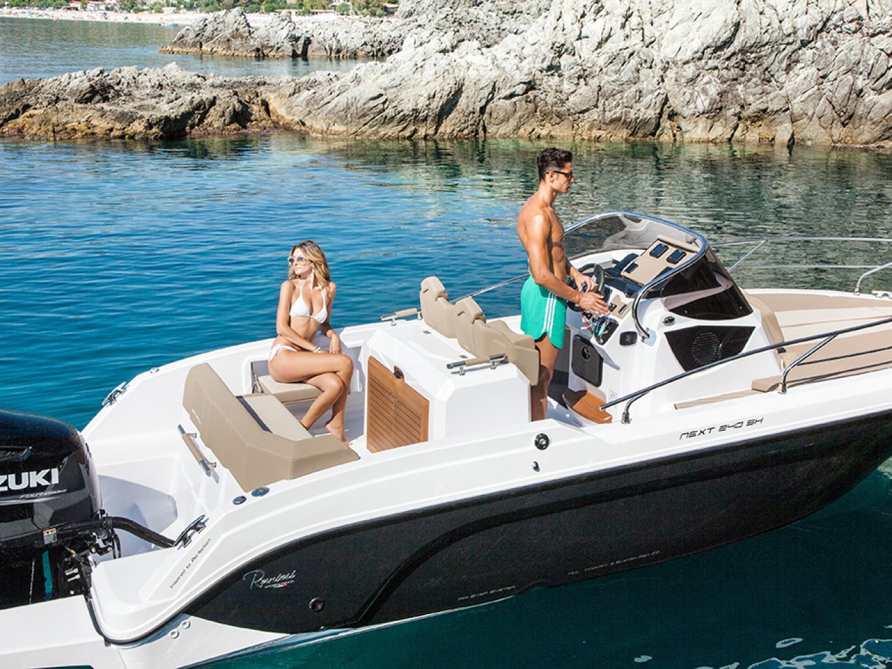 Un passage et des déplacements sereins, a la proue on retrouve cette belle delphinière qui permet un débarquement facile.De même que le Next 220 SH, le Next 240 SH peut se configurer de manière optimale afin d’accueillir jusqu’à 7 personnes, grâce à ses assises latérales basculantes, à sa banquette et aux sièges pilotes qui pivotent.