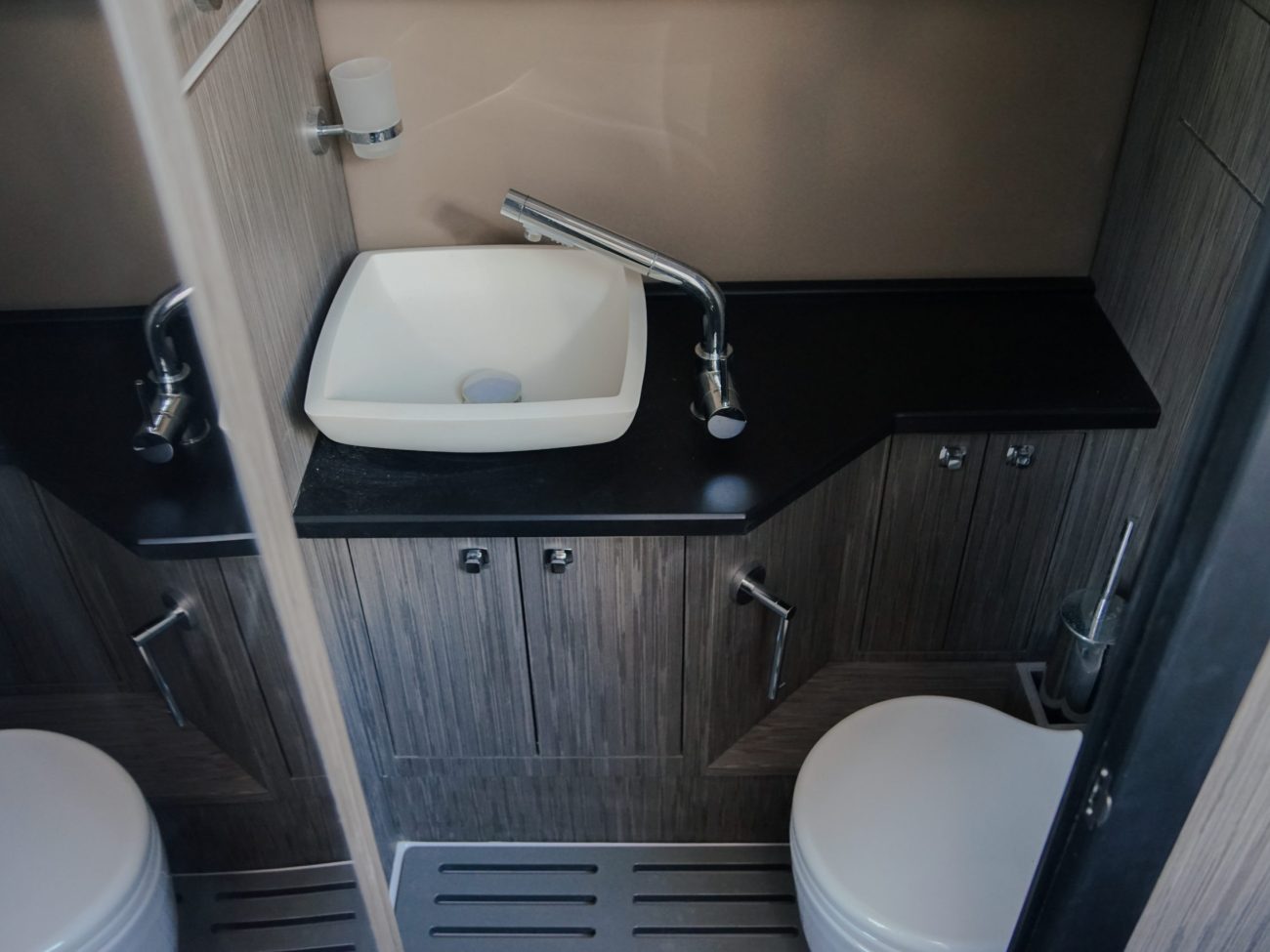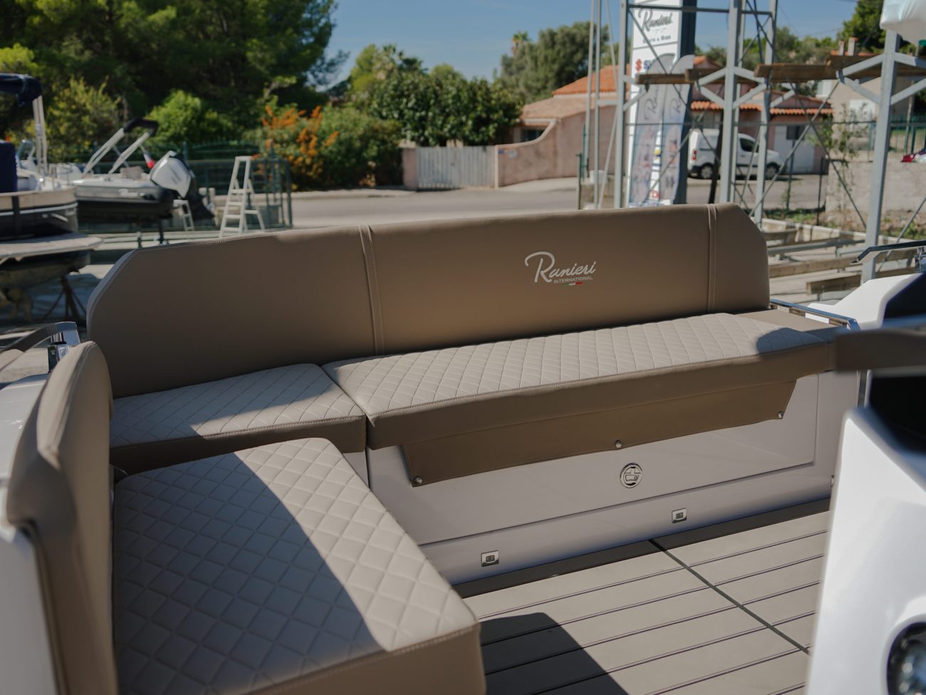 Concernant la cabine, les espaces sont généreux et raffinés. Avec une hauteur intéressante la cabine offre 4 couchages. Un lit double pouvant se transformer en coin repas avec table, ainsi qu’un seconde cabine aux volumes généreux. La salle d’au est elle aussi spacieuse avec WC douche et lavabo. Quant à la navigation, fidèle à son savoir faire, Ranieri nous offre une carène sportive, stable et remarquable