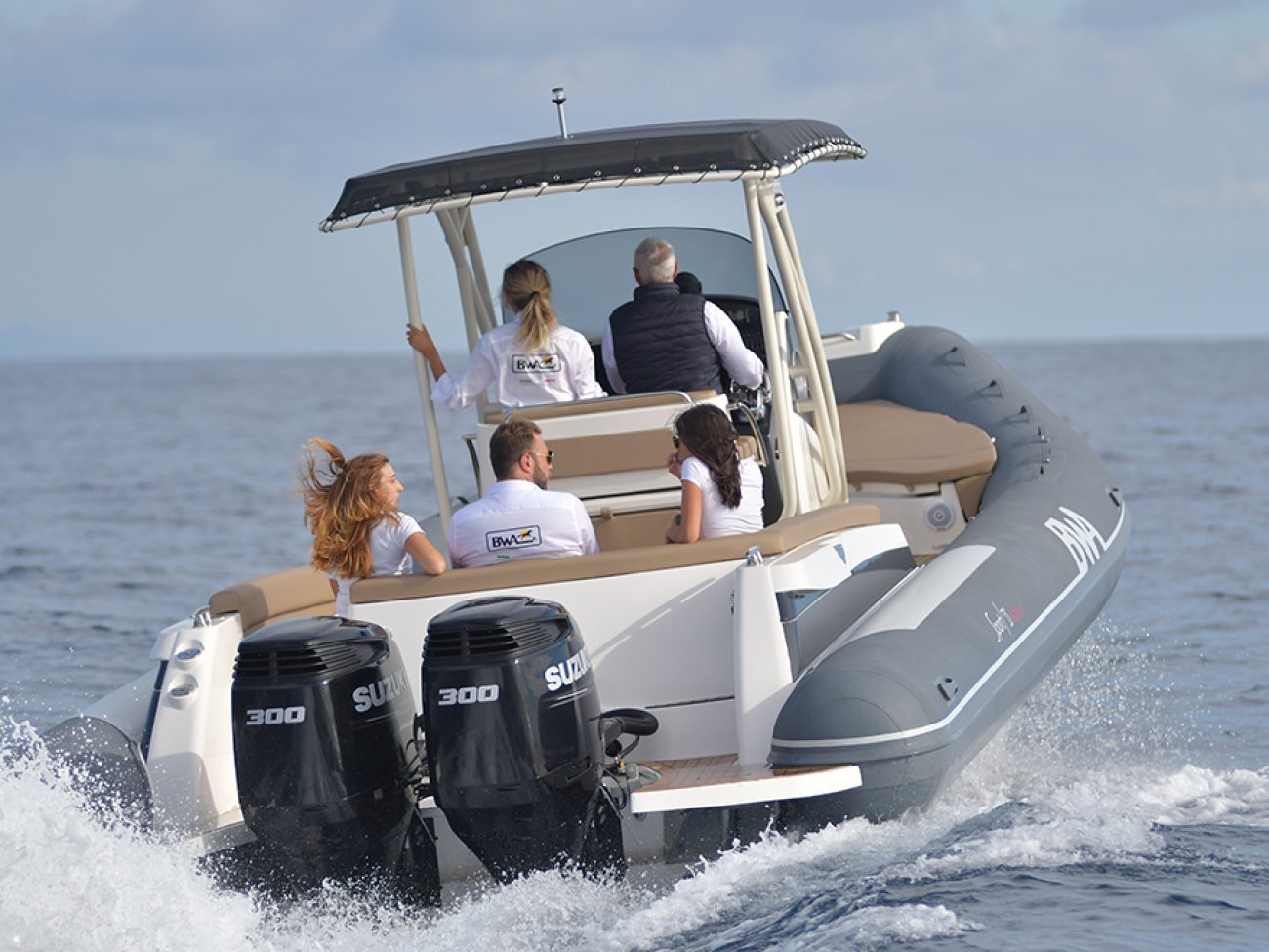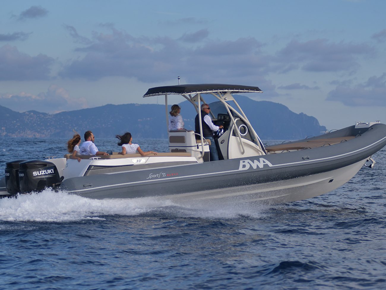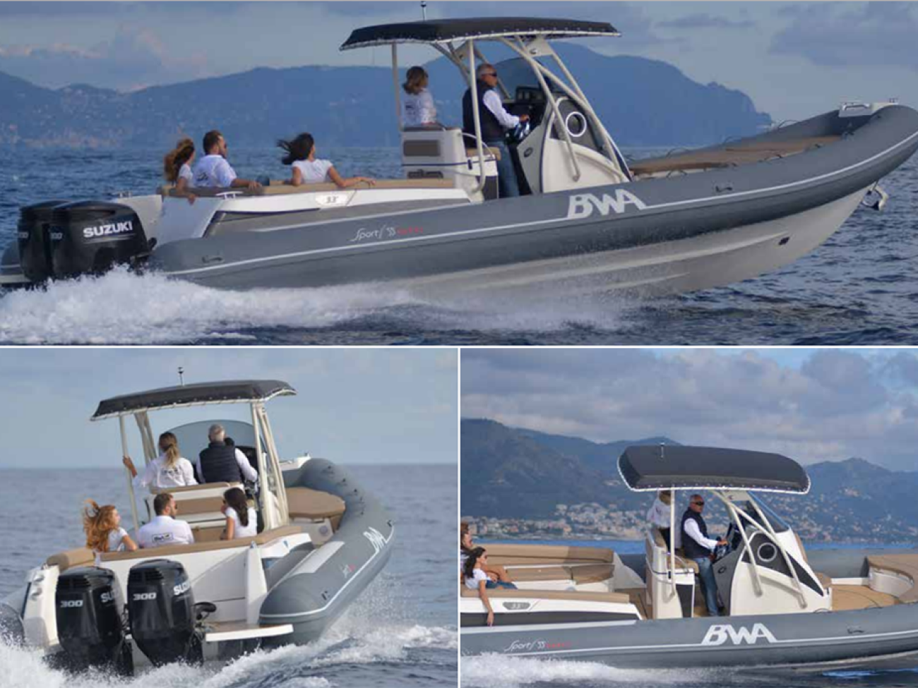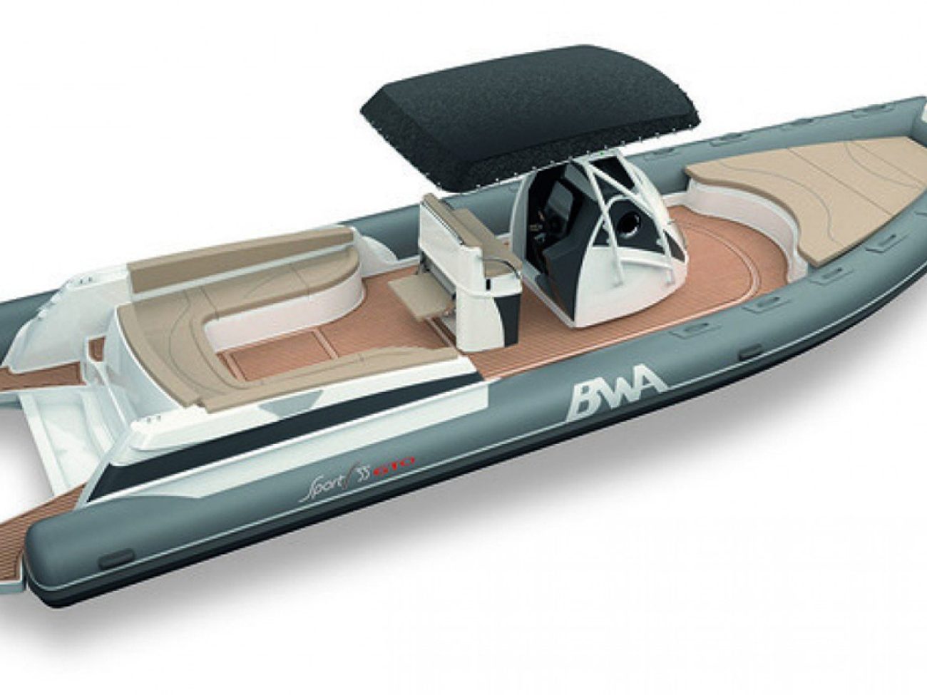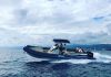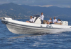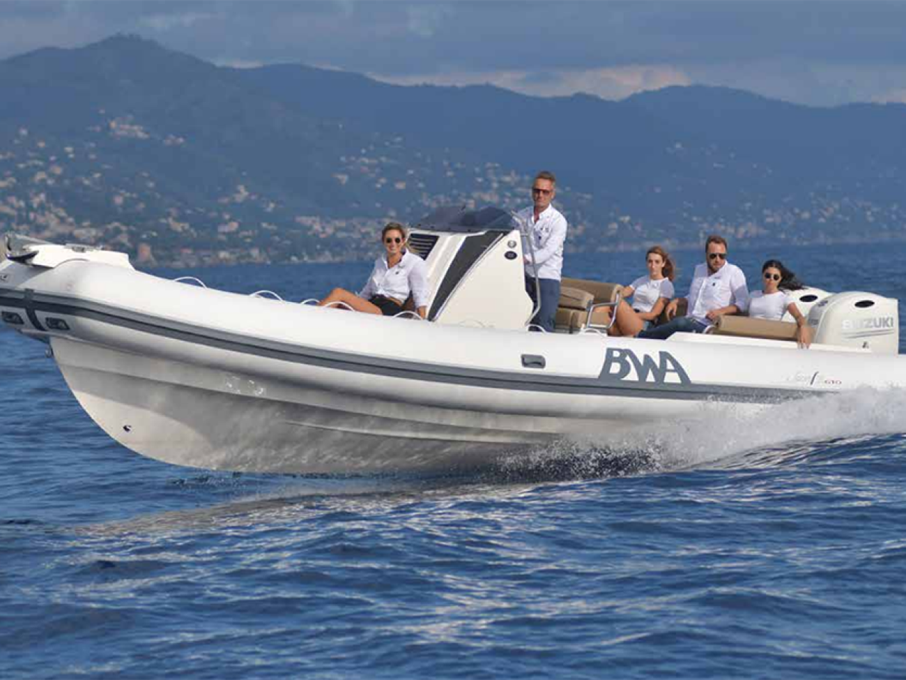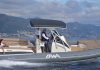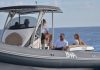 Pont en teck de série, console équipée de wc, lavabo et douche, guindeau électrique, planchettes de bain extra longues et la possibilité de personnaliser votre semi-rigide avec d’autres accessoires de confort.