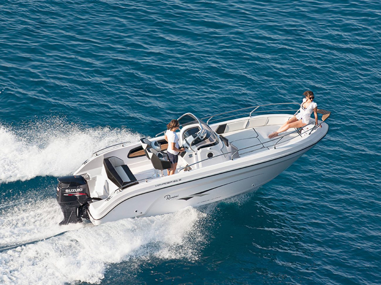 Le confort et l’élégance sont au rendez-vous aussi bien à bord avec l’ensemble de ses selleries à cellules fermées de haute qualité, du meuble cabine en hêtre, que lors de la navigation grâce à sa carène à step HIS qui assure une stabilité et des performances maximales.